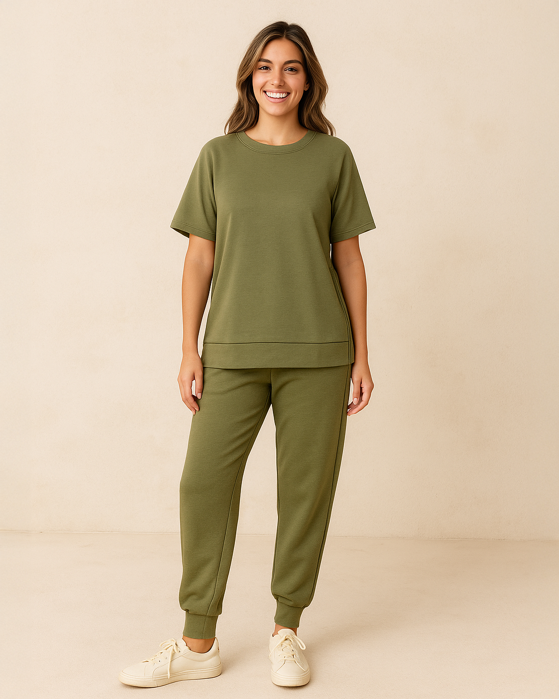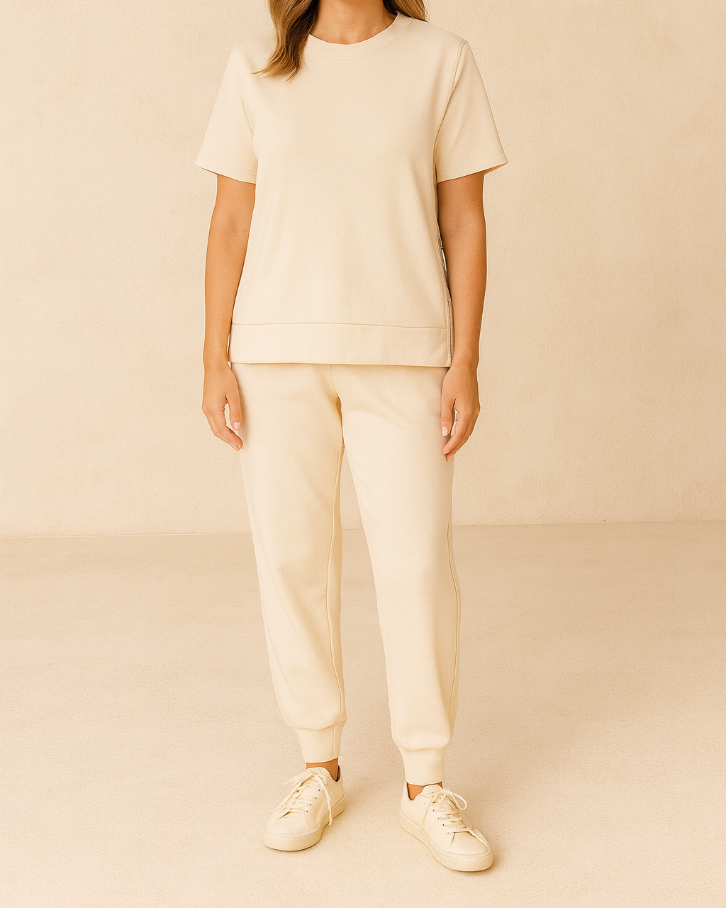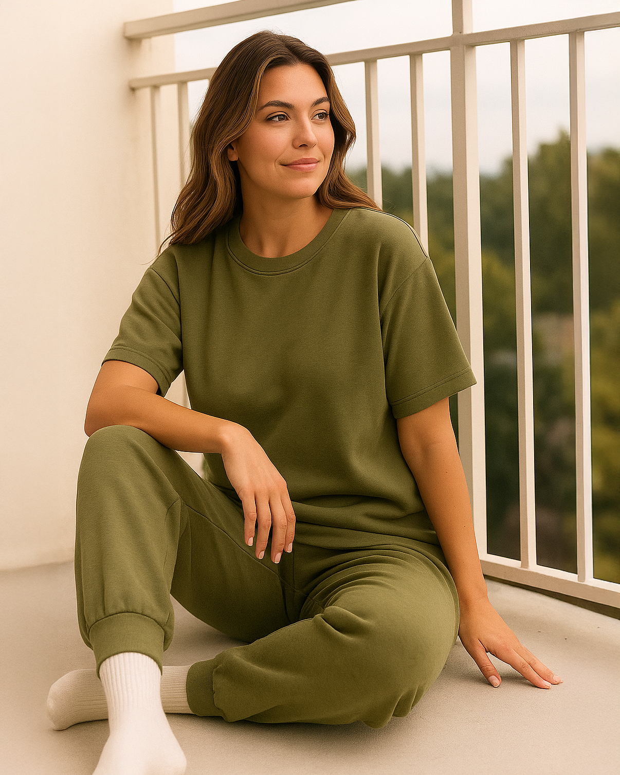The Drift Set is your upgrade from bulky sweats. Flattering, and clean. It’s made for movement, built for comfort, and styled for real life. From daily errands to couch days, this set does it all.